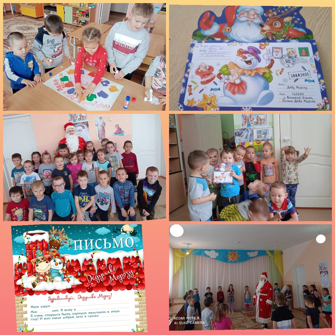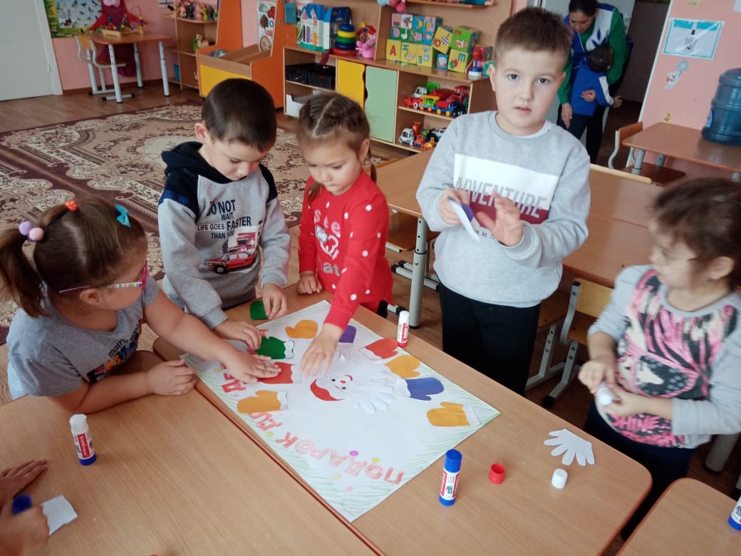 В завершении дети изготовили поздравительные открытки и подарили их Деду Морозу. Но и он пришёл не с пустыми руками, оставил воспитанникам бланки для написания письма с пожеланиями долгожданного подарка на Новой Год, которые отправят вместе с родителями 4 декабря, в день заказов подарков и написания писем Деду Морозу.