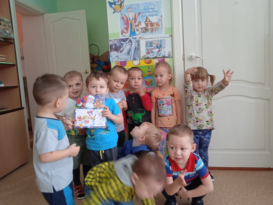 И в этот знаменательный день, воспитанники детского сада «Солнышко» пригласили в гости Дед Мороза и поздравили его с Днем Рождения, пели с ним песни, танцевали, играли. Педагоги познакомили ребят с вотчиной Дед Мороза, рассказали, как отмечает свой праздник именинник.
