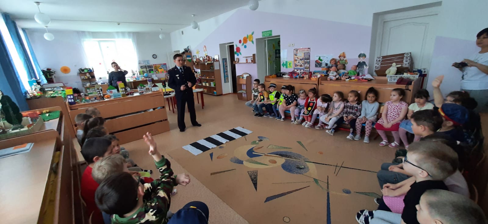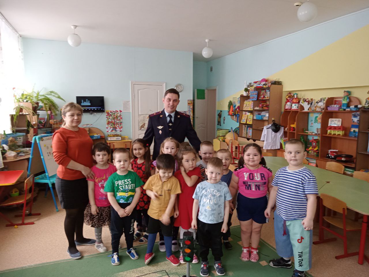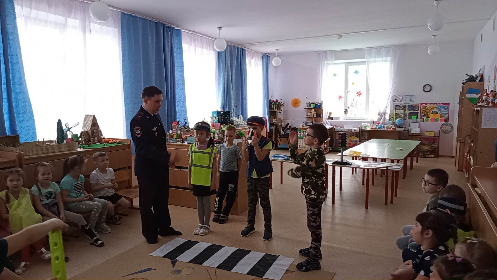 Рамиль Наилевич рассказал о правильном и безопасном поведении на проезжей части, о правилах езды на велосипеде, зачем нужны светоотражающие элементы на одежде. Вместе с сотрудником полиции дети вспомнили основные правила пешеходов и поиграли в игру «Как мы ходим по дороге». Майор полиции отметил, что необходимо неукоснительно соблюдать правила дорожного движения и не поддаваться отрицательному влиянию.
