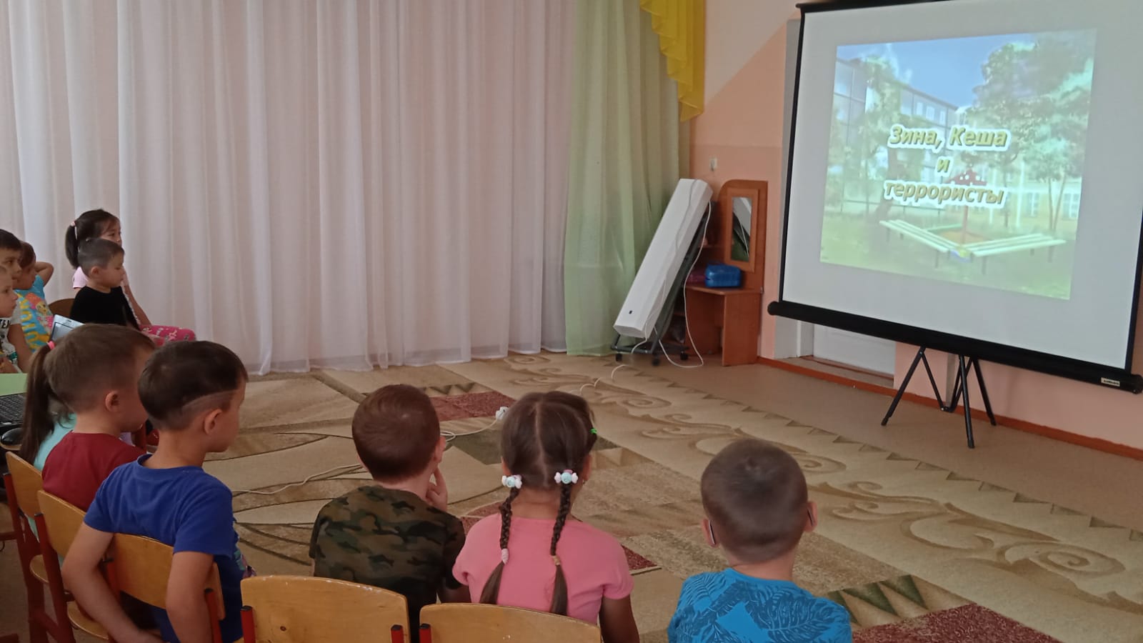 3 сентября "День солидарности в борьбе с терроризмом ", и чтобы повысить уровень знаний о том, как противостоять опасности в подготовительной группе с воспитанниками провели беседу по сюжетным картинкам "Не берите незнакомые предметы на улице", " Если ты потерялся ". Посмотрели обучающий мультфильм" Кеша, Зита и террористы ".